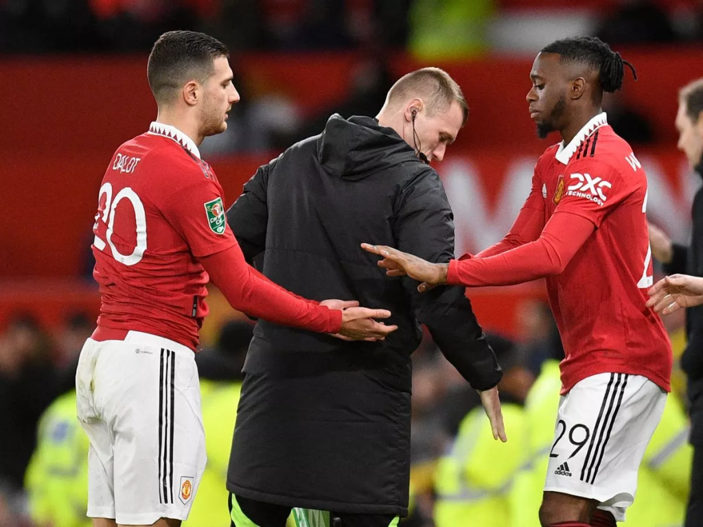 Manchester United attempted a similar pressing trap as Wolves, seeming to want the ball to go to the LB, Rayan Ait-Nouri. Wolves would have a numerical advantage playing out from the back, and with a few different passing patterns would be able to work the ball out to the free man, Ait-Nouri. At this point however, neither Bruno or Antony moved to press Ait-Nouri as Matheus Nunes did to Wan-Bissaka. United looked like they wanted to engage around the halfway point of the pitch, in an effort to have more space behind the defence when the ball was won back. Unfortunately for United, they did not win the ball back on that flank very often. Ait-Nouri had space to run, and by the time Wan-Bissaka met him at the halfway line, there was already a triangle with Nunes and Cunha that Wolves used to play around the United defence far too easily. Once the ball came to Cunha specifically, the striker was able to run through the midfield of United with ease, and bring Wolves into the final third by himself very often, setting up Sarabia and Neto for a few good chances. Neto had the best chance of the game and will be regretting not converting it.