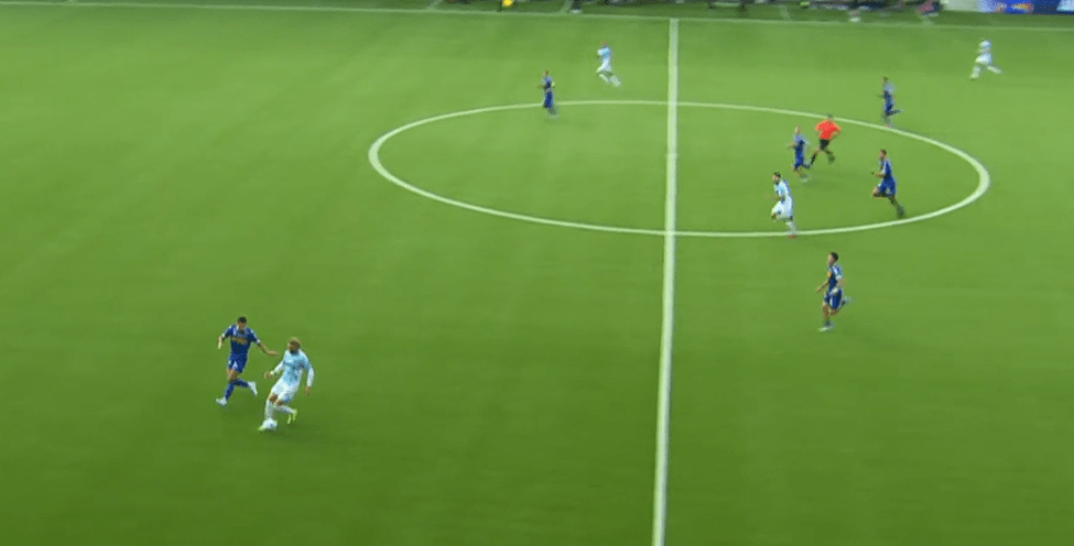 Sloncik recognizes the pass about to be made, realizes he cannot intercept it and doesn’t overcommit trying to do so. He waits for his opponent to take their first touch towards goal before fully committing to the ball, making an impressive block.