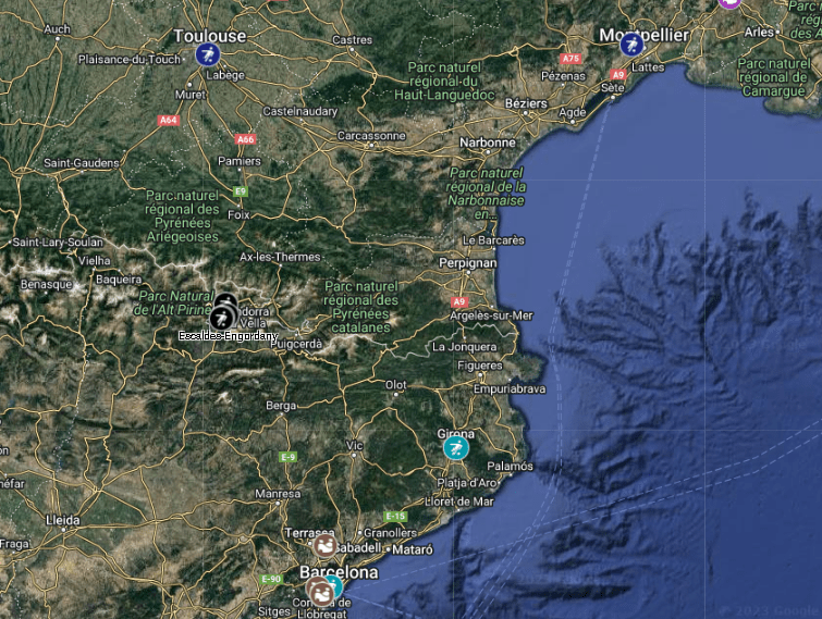 Most countries will not have more than the top 3 divisions on the map, with England being one exception, having the 4th and 5th divisions on the map. Just remember, two of the same icon with different colors near one another means the two clubs are in different countries. For example, I’ll show you the border between France, Spain, and Andorra.