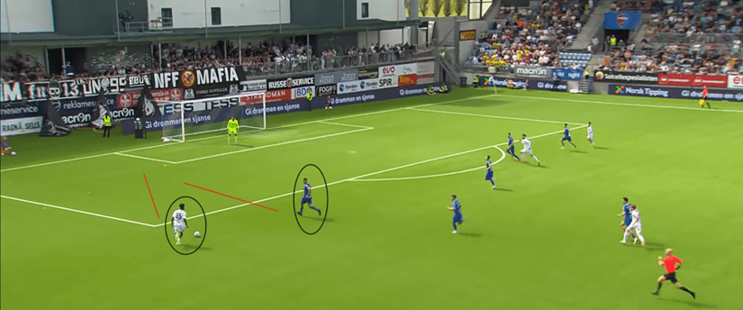 A true ball playing CB, Honest Ahanor stands out most in possession. He loves to bring the ball out of defence himself, and will frequently use his long frame to skip past defenders in just a few steps. Ahanor does have the early makings of a rare type of defender, one who can very comfortably operate as both a CB, and as a LWB. Think Atlético’s Dávid Hancko, just trade off some of Hancko’s defending/crossing ability for a bit more on the ball skill.