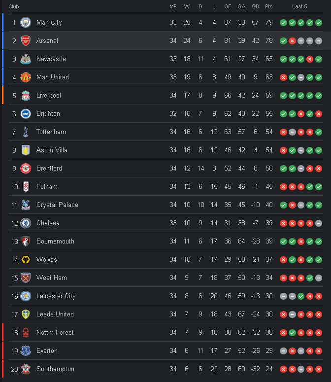 Finally we will address Erik ten Hag’s potential departure from Manchester United. While not officially announced by the club, The Guardian reported that ten Hag’s future had been decided by new owners INEOS, with the Dutch coach to be sacked following the FA Cup final, regardless of the result of the final. As we now know, Manchester United won the FA Cup, which could give INEOS and Sir Jim Ratcliffe a tougher decision to make, but press conferences by ETH around the FA Cup final did not offer any assurance that his future was secured. He notably said : “If they don’t want me, I will go anywhere else and win trophies. That is what I do.” So if he is sacked, he certainly doesn’t feel like he deserves to be, but it is hard to predict. Looking at ten Hag’s record with United, including his transfers, sacking him makes sense to me. However like with some of these other managerial changes, sacking him with the currently available pool of managers does not make sense, with no clear cut improvement available. United could just be victims of another trigger happy managerial change, with ETH’s replacement not faring any better, but only time will tell.