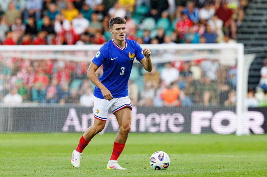 Zinedin shapes to pass to his right, dragging the defenders over, before finding a pass through the lines to his teammate in space to turn and progress:
